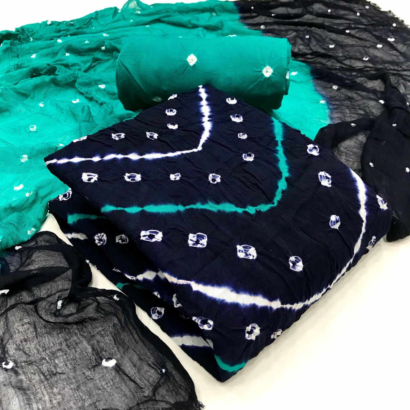 | Name : | KT GULZAR Pure Rayon Leriya Petern Bandhni Dress Materail |
