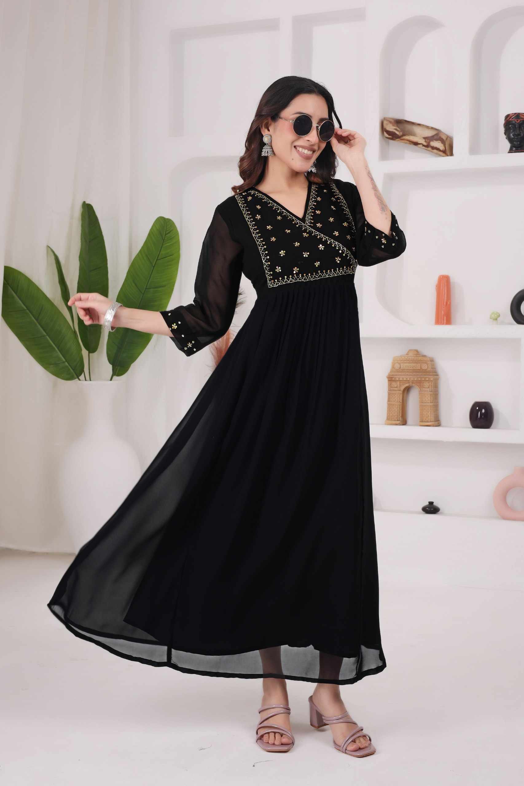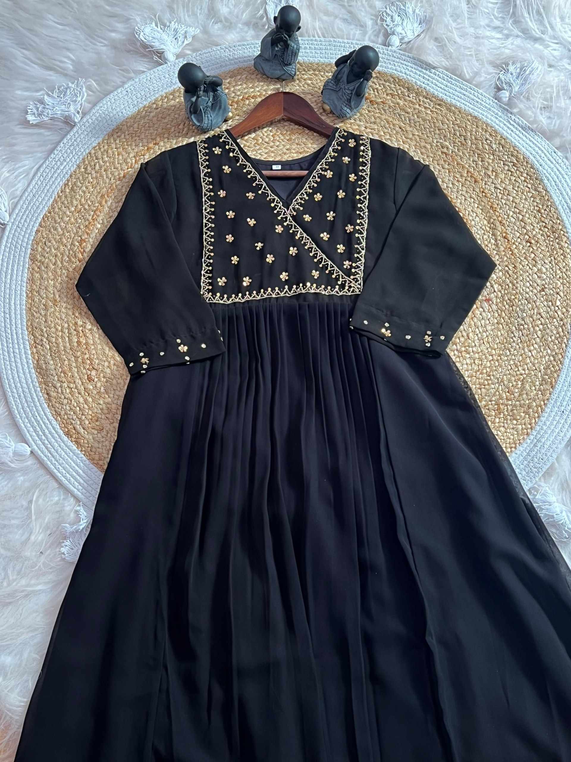 WM12 BLACK BLOOMING GEORGETTE BEAUTIFUL HANDWORK KURTI
