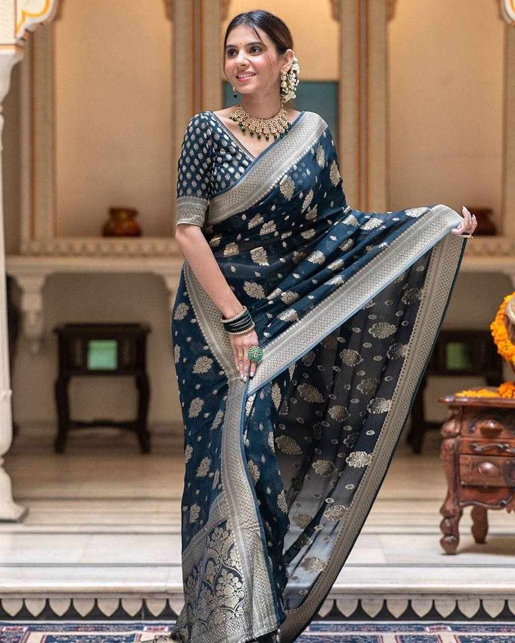 | Name : | KP-R 190 New Traditional Wear Navy Blue Saree |