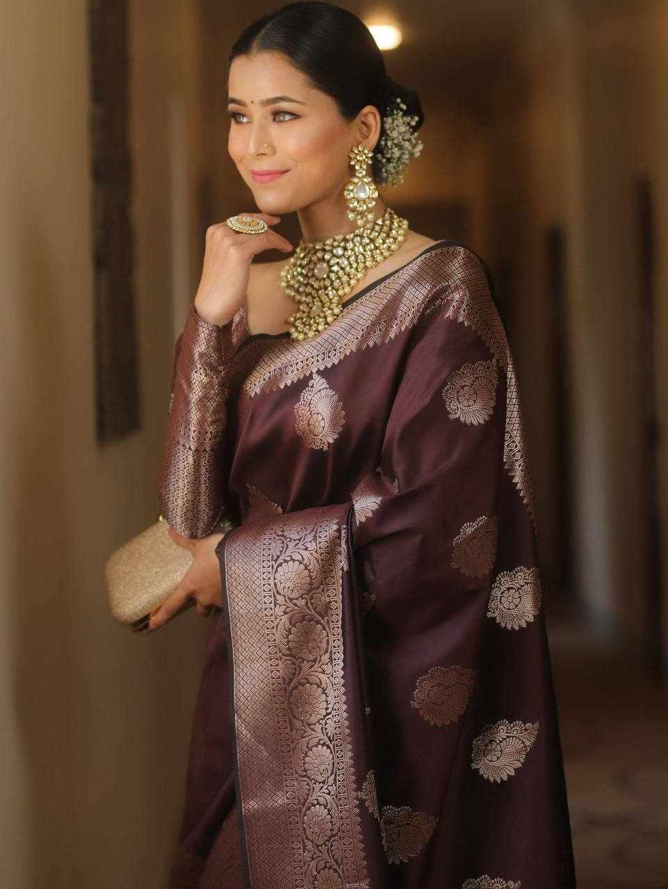 Design: Beautiful rich pallu with intricate jacquard work woven all over the saree, adding a luxurious and graceful appeal