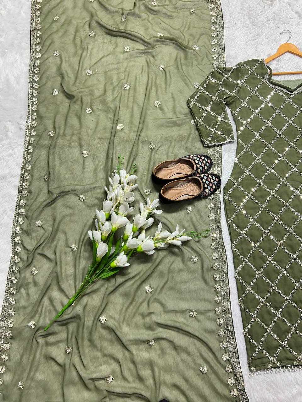 MF 409 New Fancy Embroidered Mehndi Color Dress