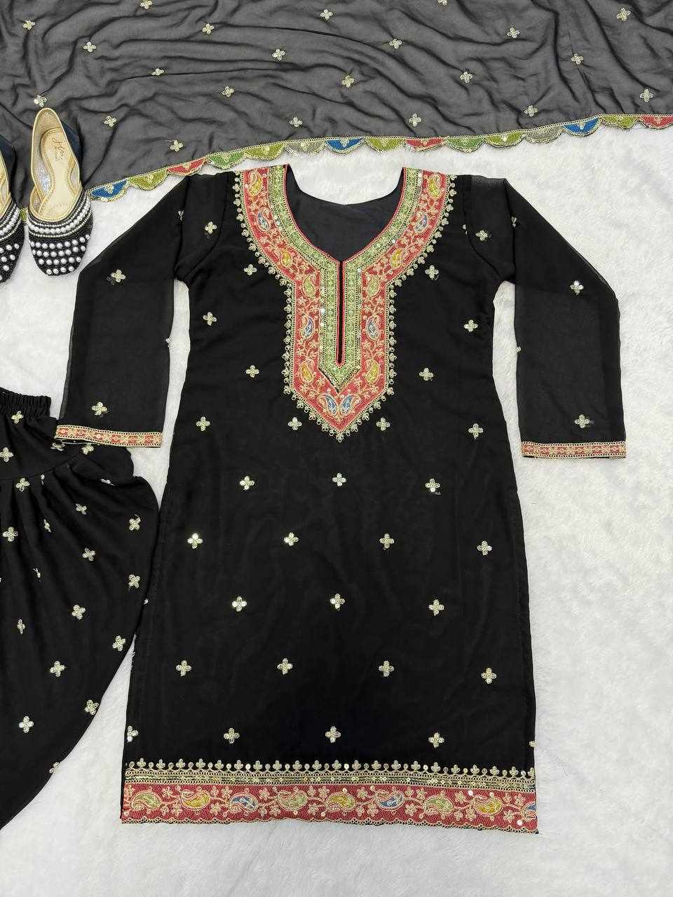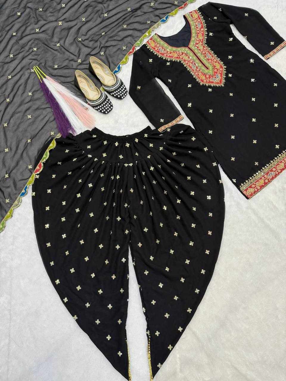 Step into elegance with this stunning Blooming Heavy Faux Georgette Dhoti Salwar Set, beautifully crafted with heavy embroidery sequence work and full sleeves. Perfect for festive occasions, weddings, parties, and traditional functions.