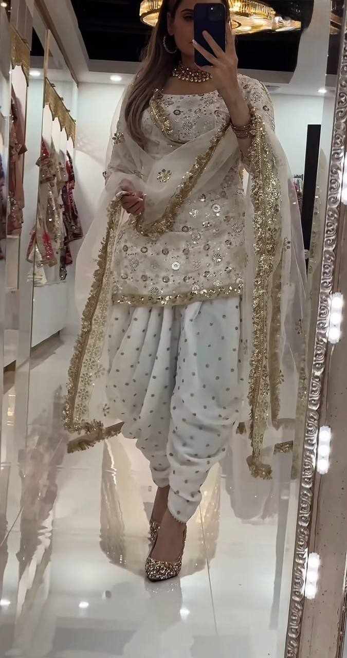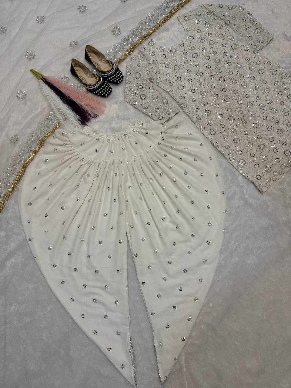 Step into elegance with this stunning Blooming Heavy Faux Georgette Dhoti Salwar Set, beautifully crafted with heavy embroidery sequence work and full sleeves. Perfect for festive occasions, weddings, parties, and traditional functions.