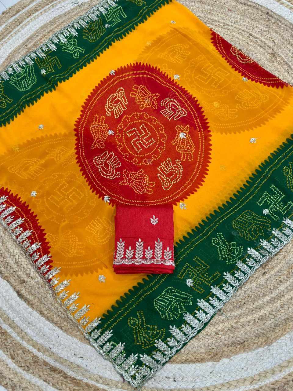 | Name : | PIYU 1055 KHAJURI BORDER-4 YELLOW-GREEN SAREE |