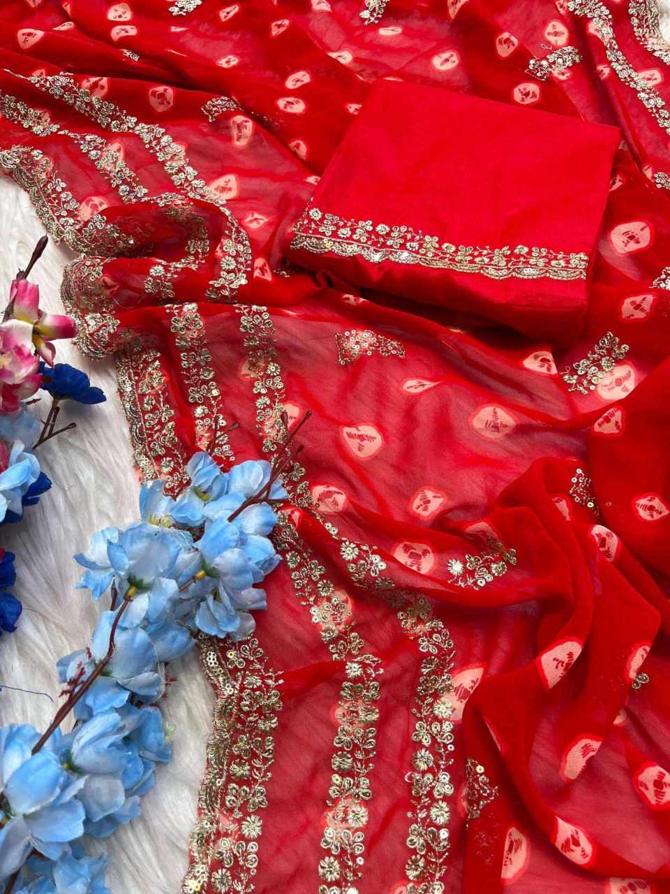 PIYU P1057 LEHERIYA COIN RED SAREE