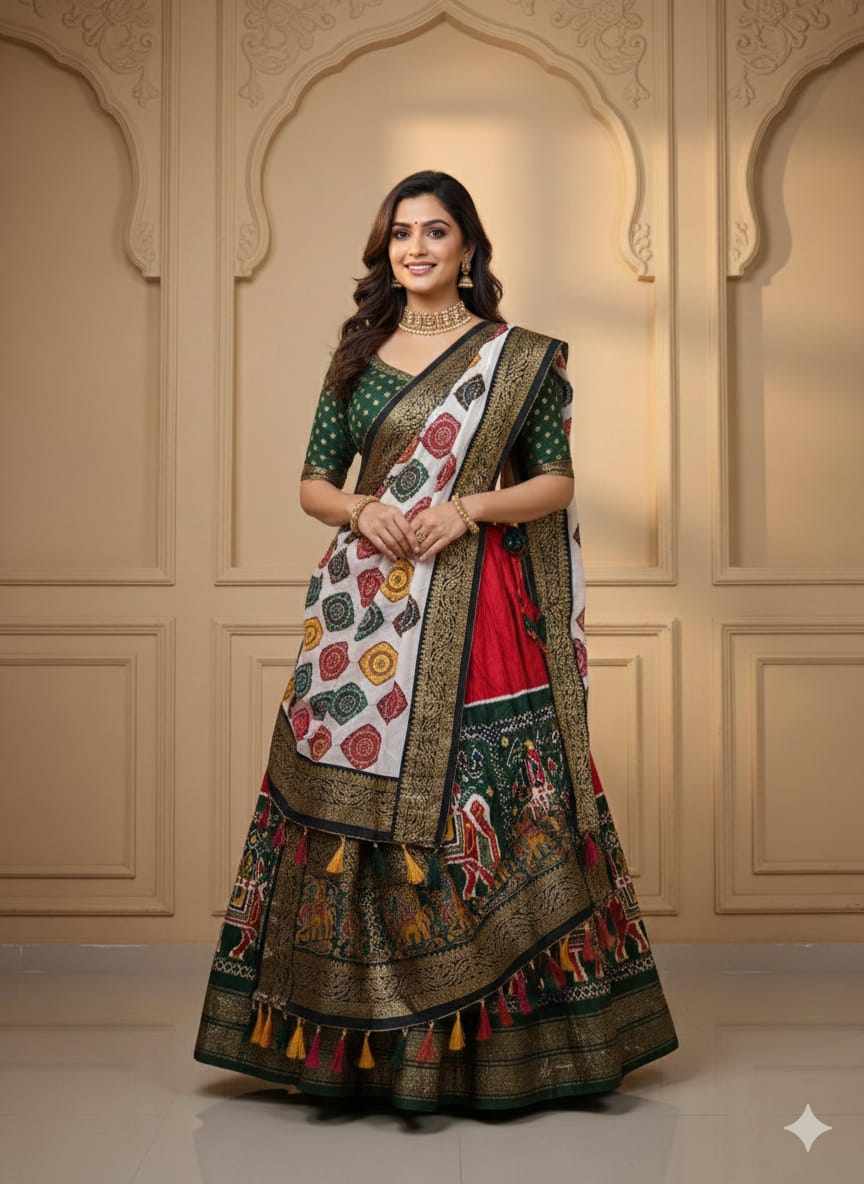 | Name : | PIYU 31-1 Silk Chaniya Choli With Viving Foil Green Lehnga |