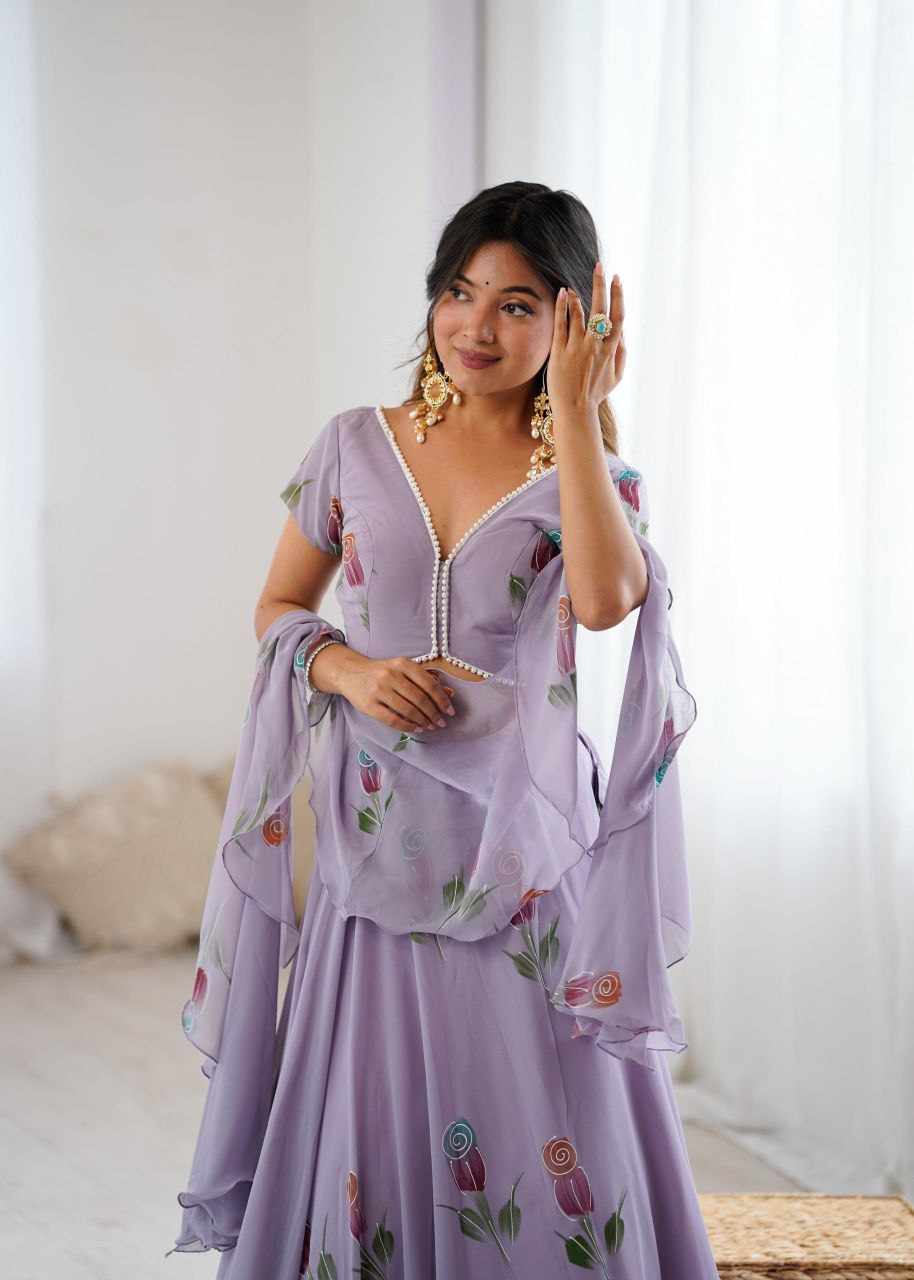 Lehenga - Pure Georgette hand painted lehenga