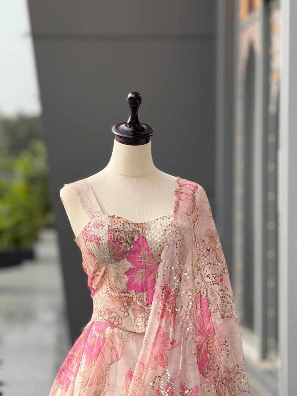 Dupatta - Digital printed organza dupatta with embroidery sequence work